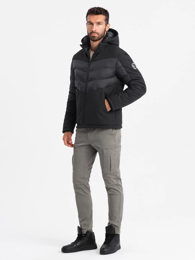 Pánská prošívaná kombinovaná bunda s vysokým límcem - černá V1 OM-JALP-0172