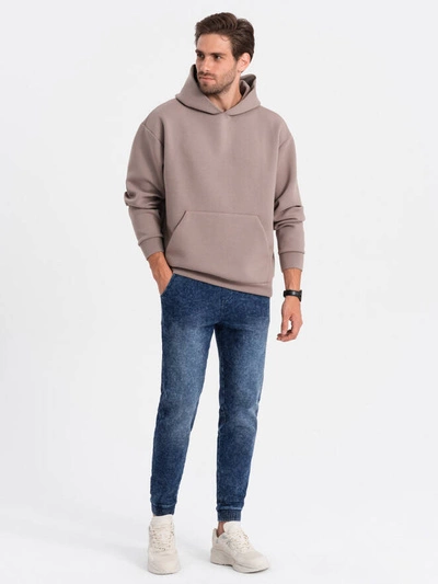 Pánské mramorované džínové kalhoty JOGGERY - tmavě modré V1 OM-PADJ-0133