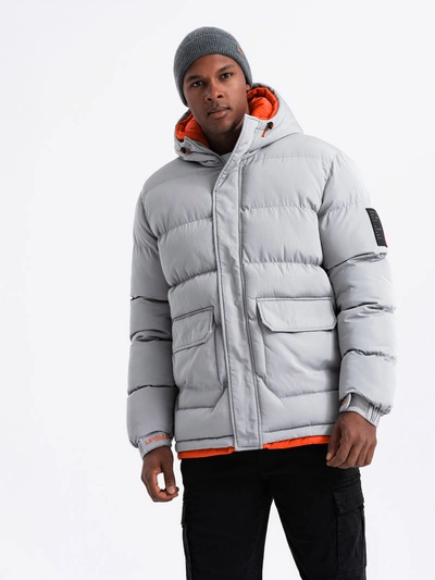 Pánská sportovní teplá bunda s dvojitou kapucí - šedá V3 OM-JAHP-0208
