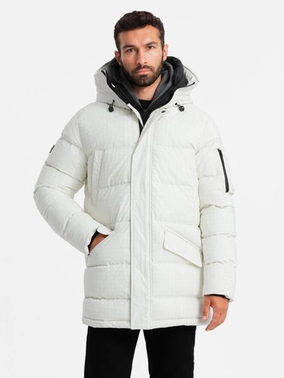 Pánská dlouhá teplá bunda parka s kapucí - béžová V5 OM-JALJ-0182