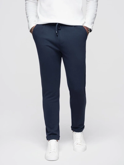 Pánské kalhoty z piké úpletu s nastavitelným pasem - tmavě modré V1 OM-PACP-0283