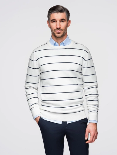 Pánský ležérní svetr s vodorovnými pruhy - krémový V2 OM-SWSW-0143