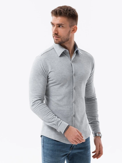 Pánská pletená košile s dlouhým rukávem - šedá V5 K540