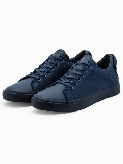 Jednokolorowe casualowe trampki męskie z łączonych materiałów – granatowe V2 OM-FOCS-0105