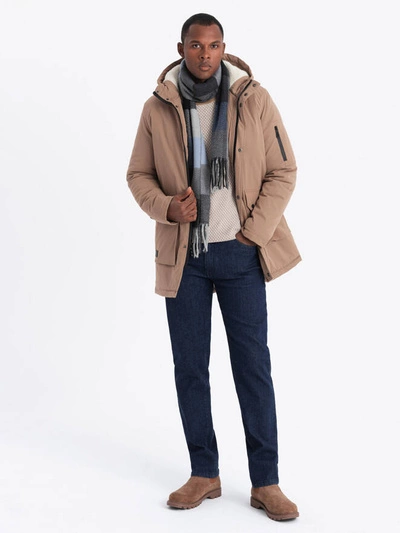 Men's long parka sherpa jacket - beige V1 OM-JALJ-0181