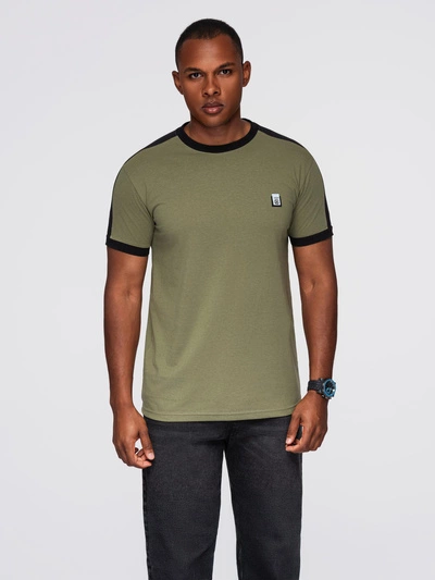 Men's T-shirt with contrasting stripes - olive V4 OM-TSCT-0115