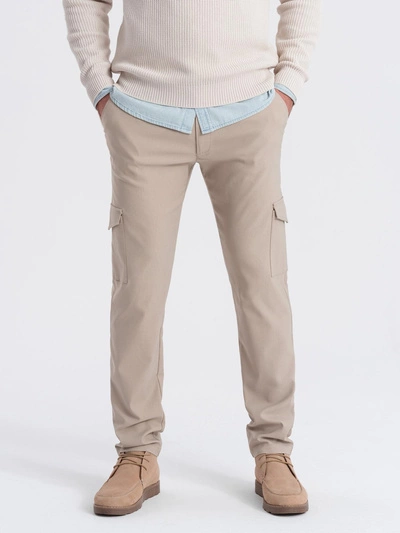 Men's REGULAR fabric pants with cargo pockets - beige V3 OM-PACG-0178