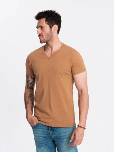Men's BASIC classic cotton T-shirt with a v-neck - brown V9 OM-TSBS-0145