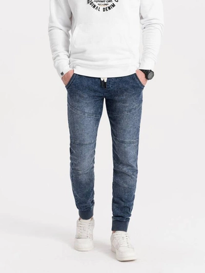 Vyriškos marmurinės JOGGERY kelnės su dygsniais - mėlynos V1 OM-PADJ-0108