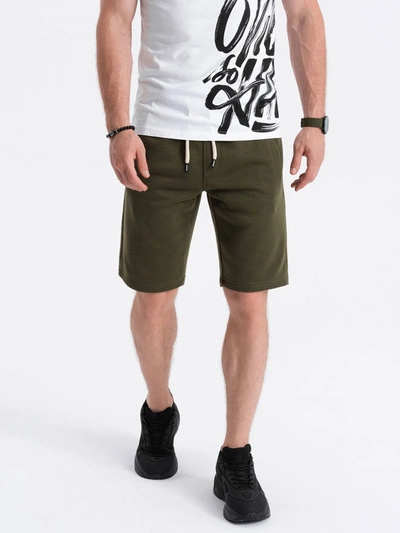 Pánske krátke šortky s vreckami - tmavo olivovo zelené V16 OM-SRBS-0109