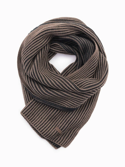 Vyriškas megztas šalikas su dviejų spalvų juostelėmis - rudos ir juodos spalvos V3 OM-ACSF-0114