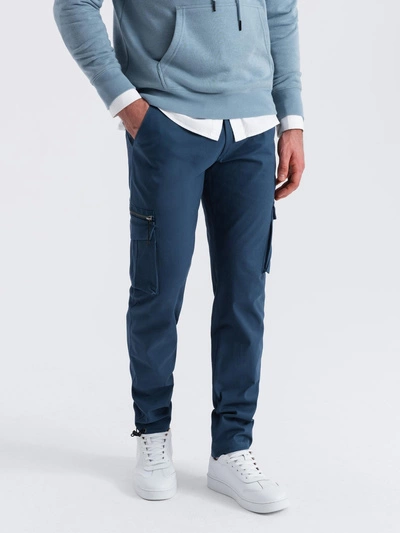 Vyriškos krovininės kelnės STRAIGHT LEG su užtrauktukais - tamsiai mėlynos V1 OM-PACG-0204