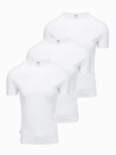 BASIC vyriški medvilniniai marškinėliai su apvaliu kaklu - 3x balti V11 OM-TSBS-0232