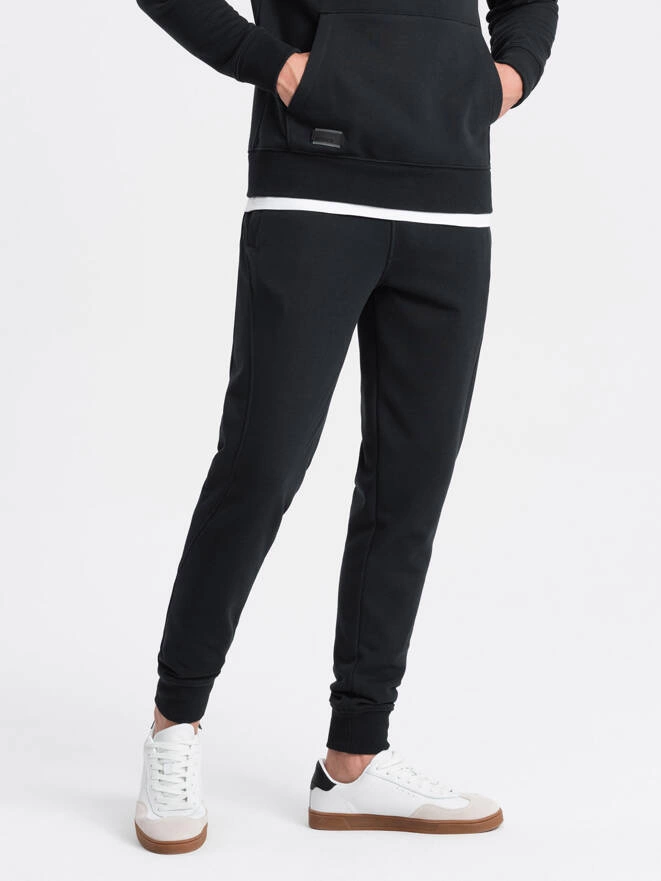 BASIC vyriškos medvilninės sportinės kelnės joggers - juodos spalvos V9 OM-PABS-0174