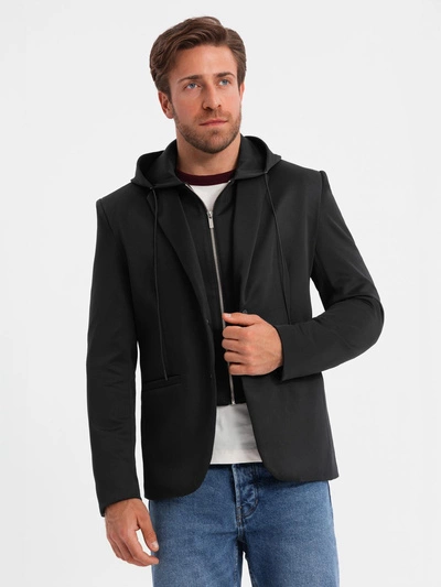 Vyriška striukė su nuimamu pamušalu ir gobtuvu - juoda V1 OM-BLZB-0126