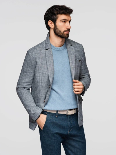 Vyriškas reguliaraus kirpimo švarkas su linu - šviesiai mėlynas V3 OM-BLZB-0128