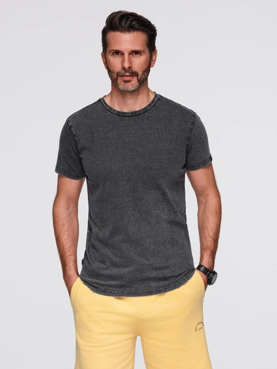 Vyriški marškinėliai su skalbimo efektu - juodi V1 OM-TSWT-0116