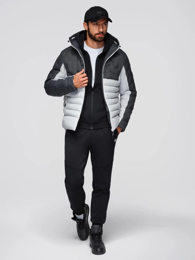Vyriška dygsniuota striukė su nuimamu gobtuvu - grafito ir baltos spalvos V3 OM-JALP-0206
