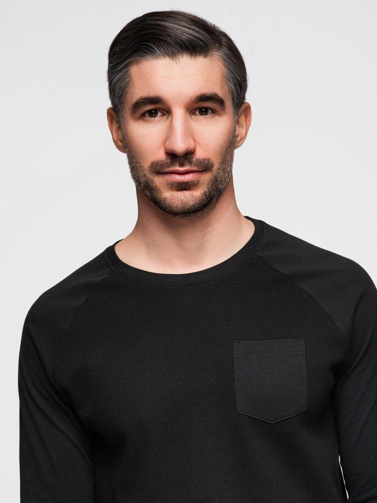 Pánský dlouhý rukáv s vaflovou texturou - černá V4 OM-LSCL-0109