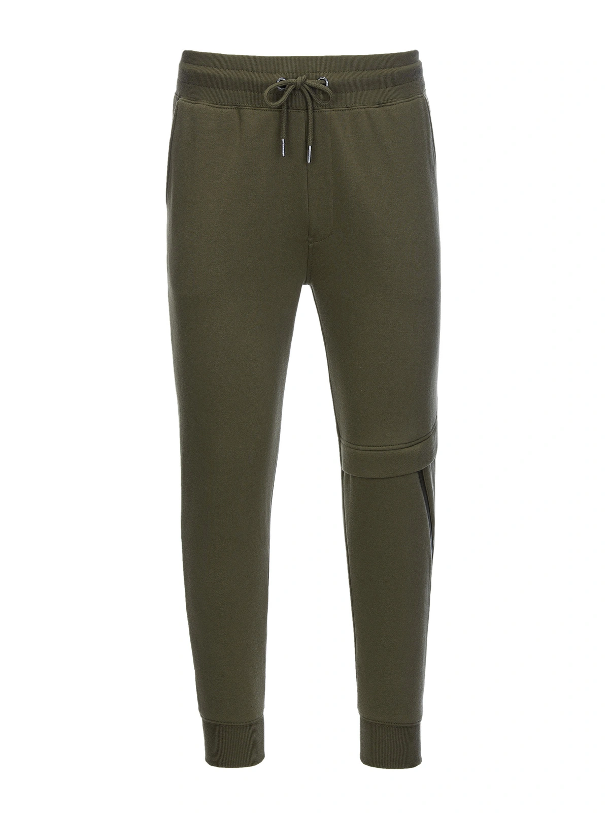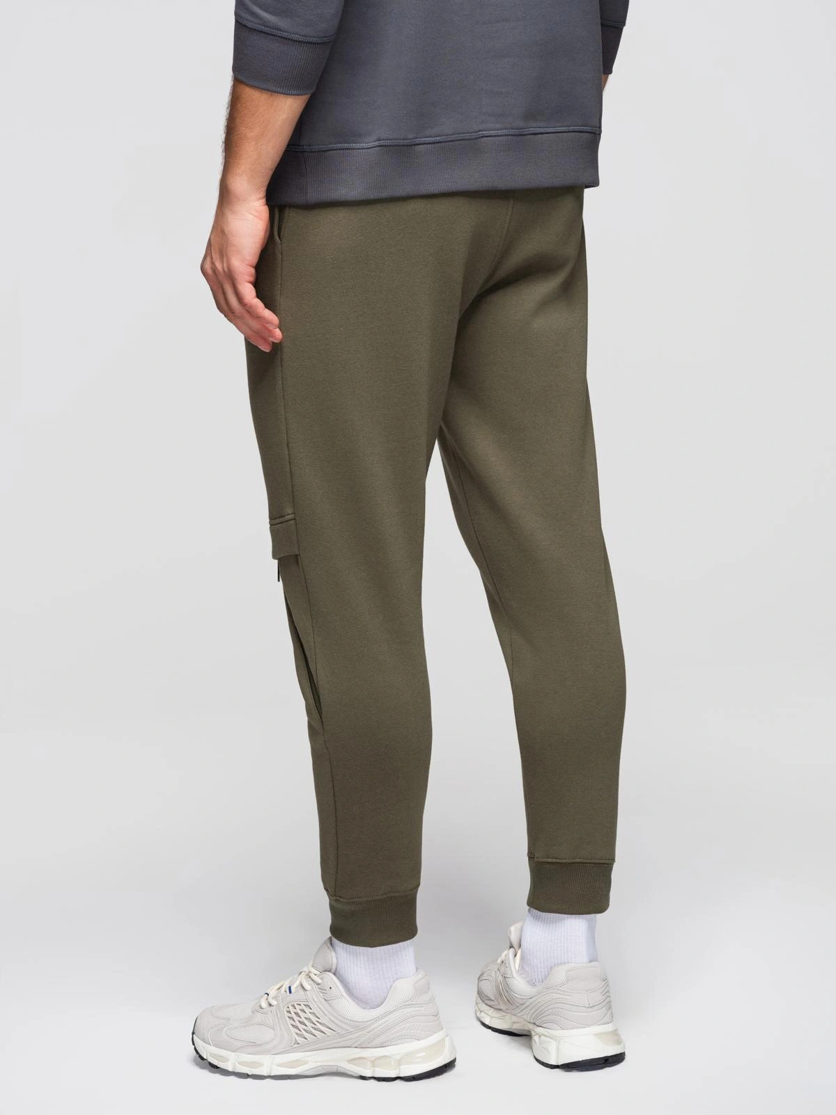 Pánské tepláky s prošíváním a zipem na nohavicích - olivové V3 OM-PASK-0147