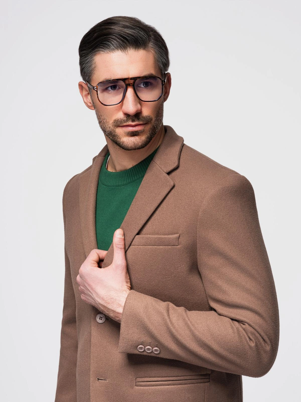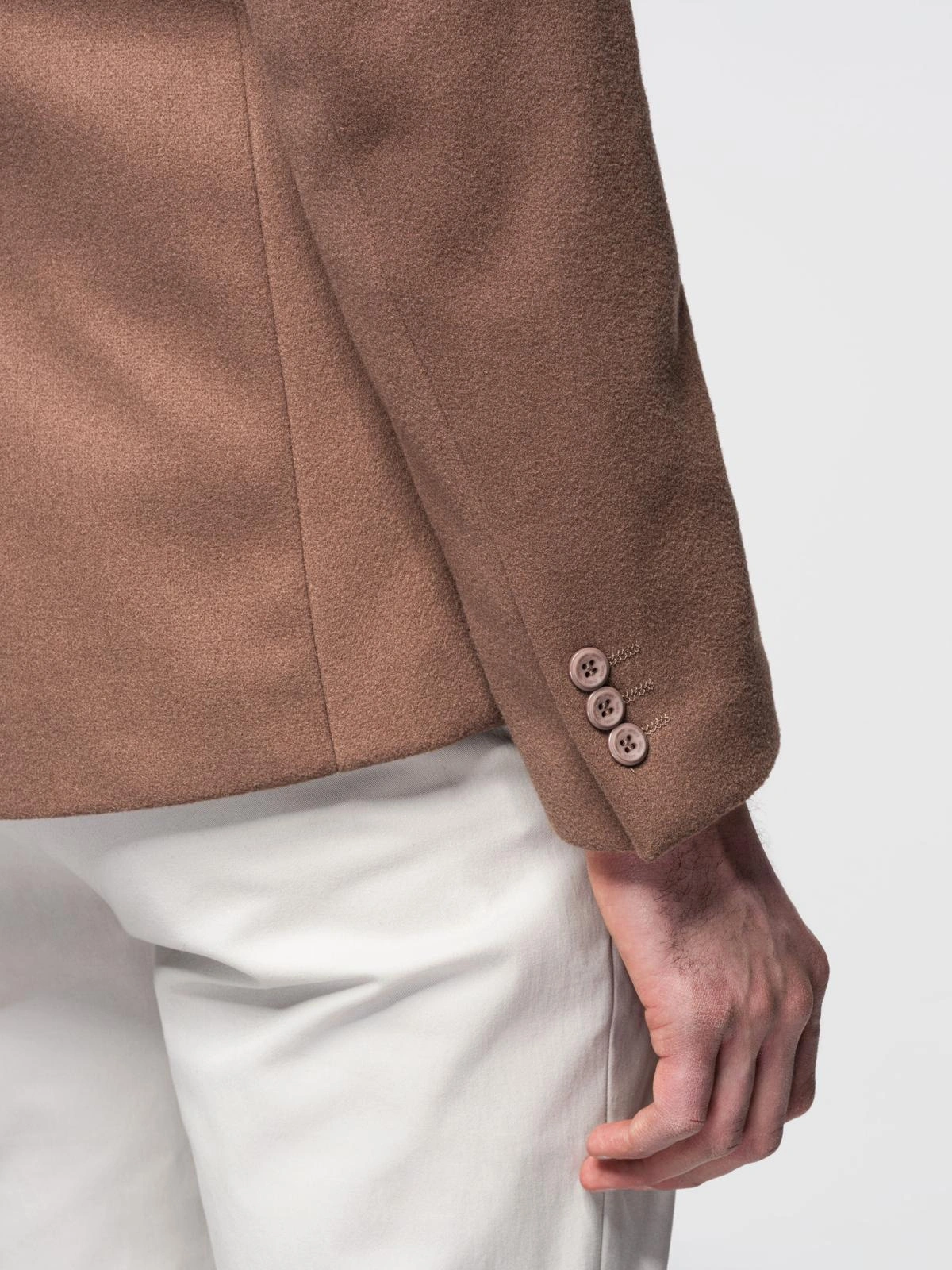 Pánské sako s ozdobnými knoflíky na manžetách - světle hnědé V2 OM-BLZB-0118