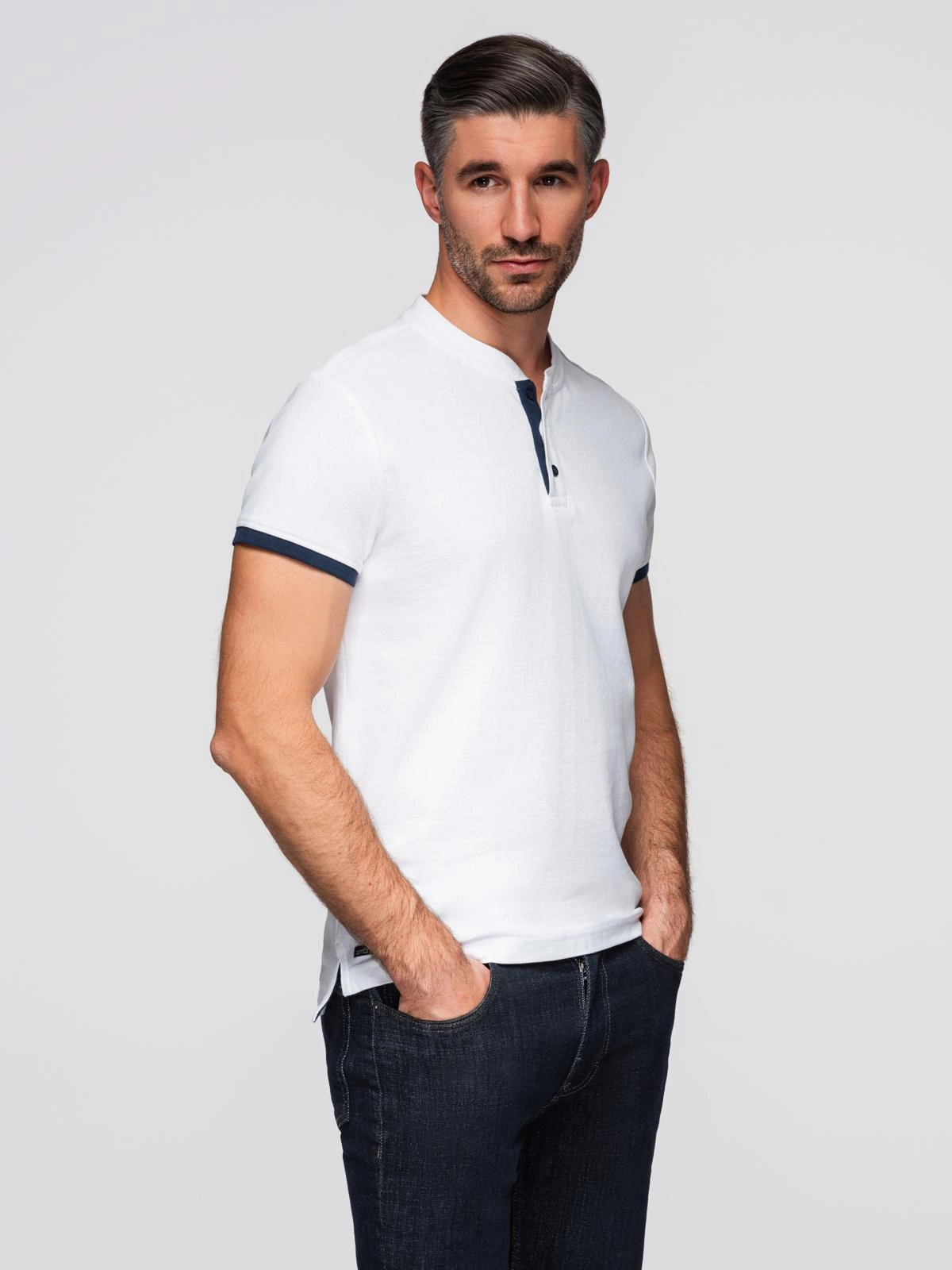 Pánská polokošile bez límečku - bílá V1 OM-TSCT-0156