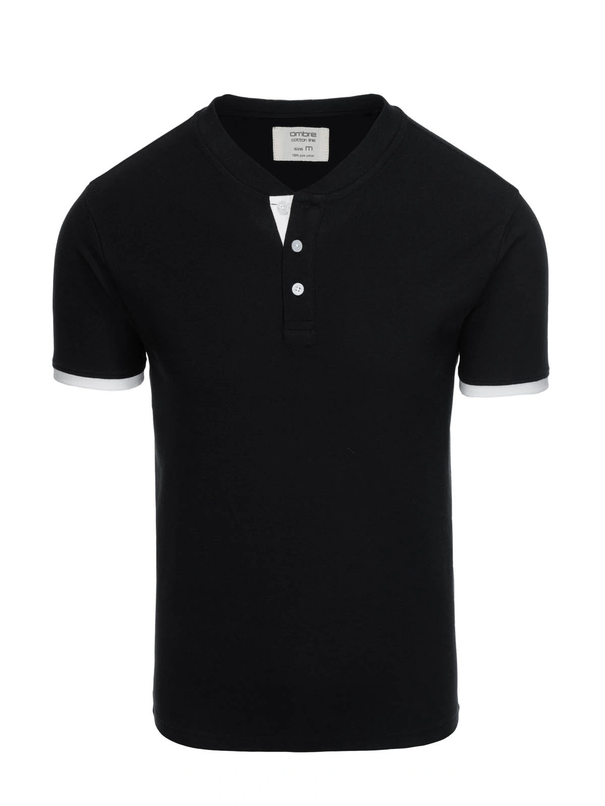 Pánská polokošile bez límečku - černá V8 OM-TSCT-0156