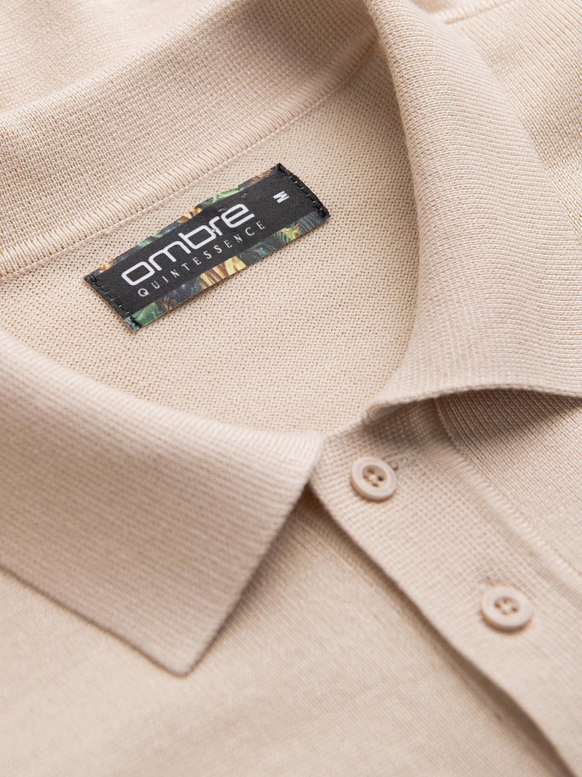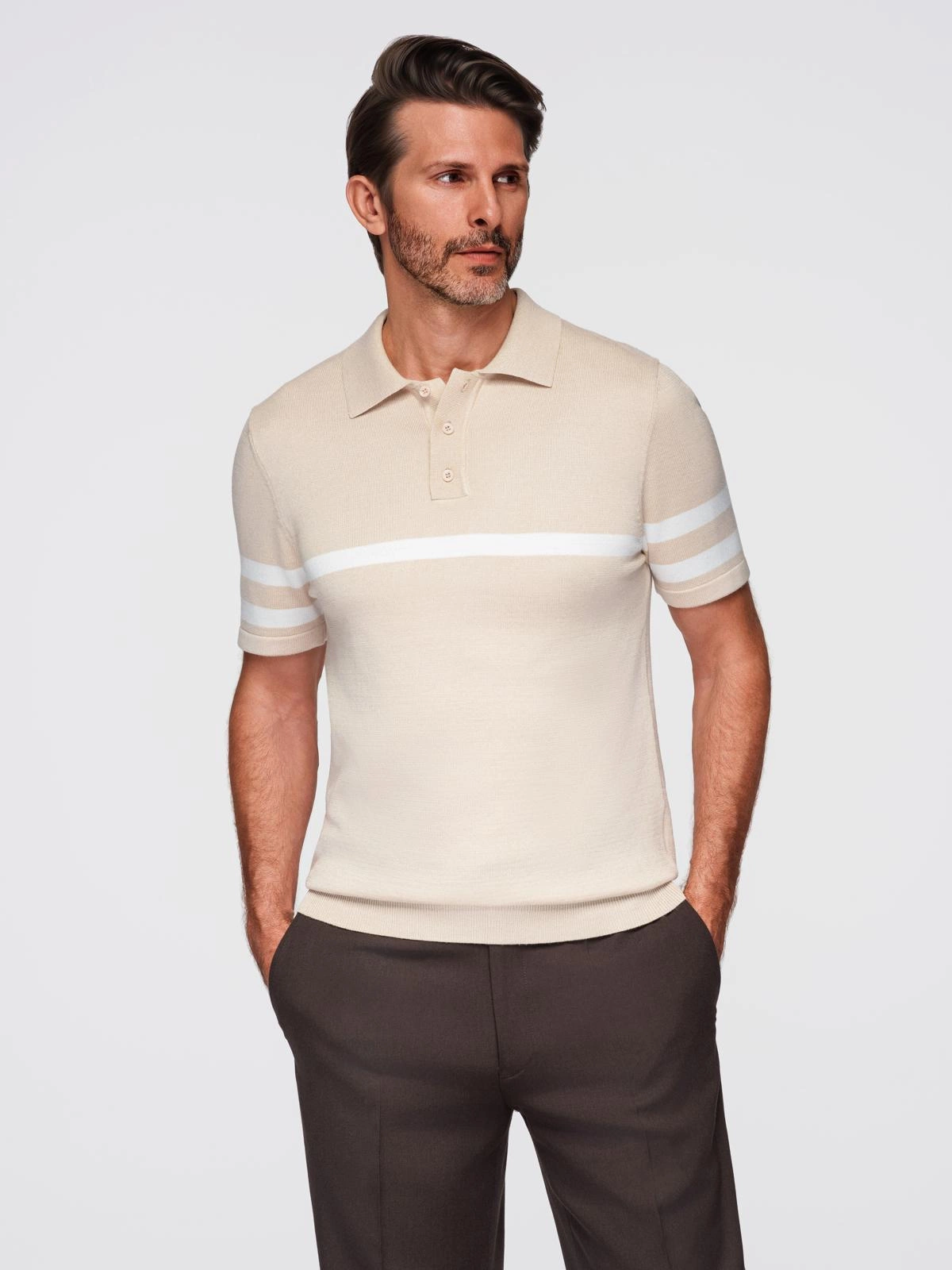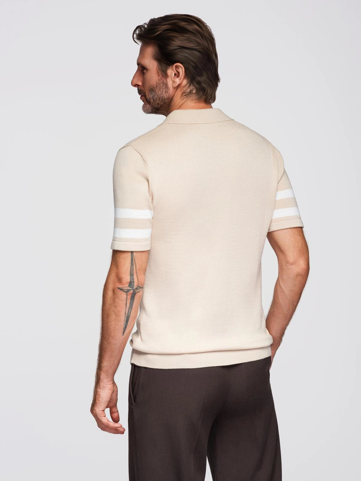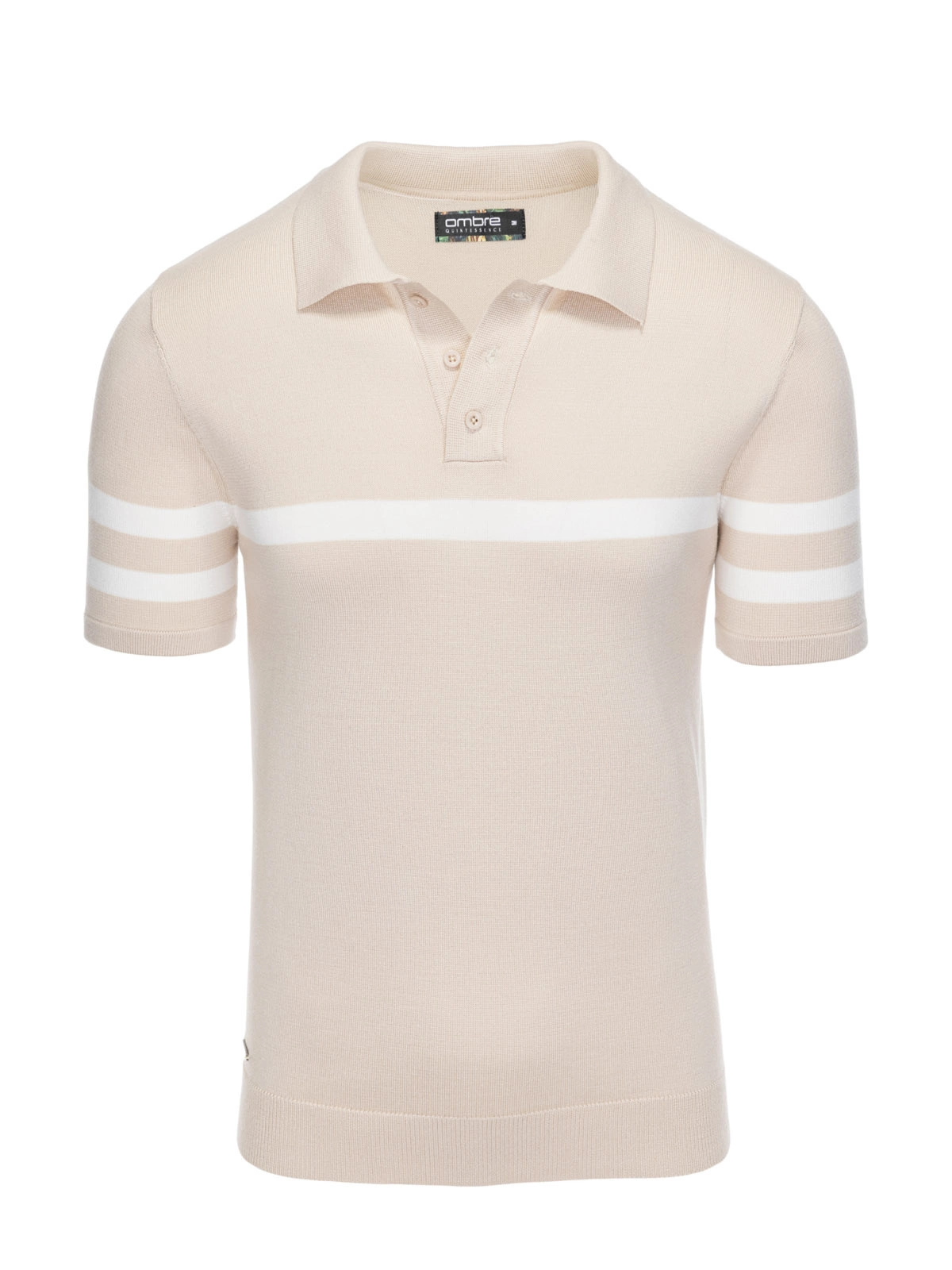 Pánská polokošile z měkkého úpletu s kontrastními pruhy - béžová V4 OM-POSS-0118