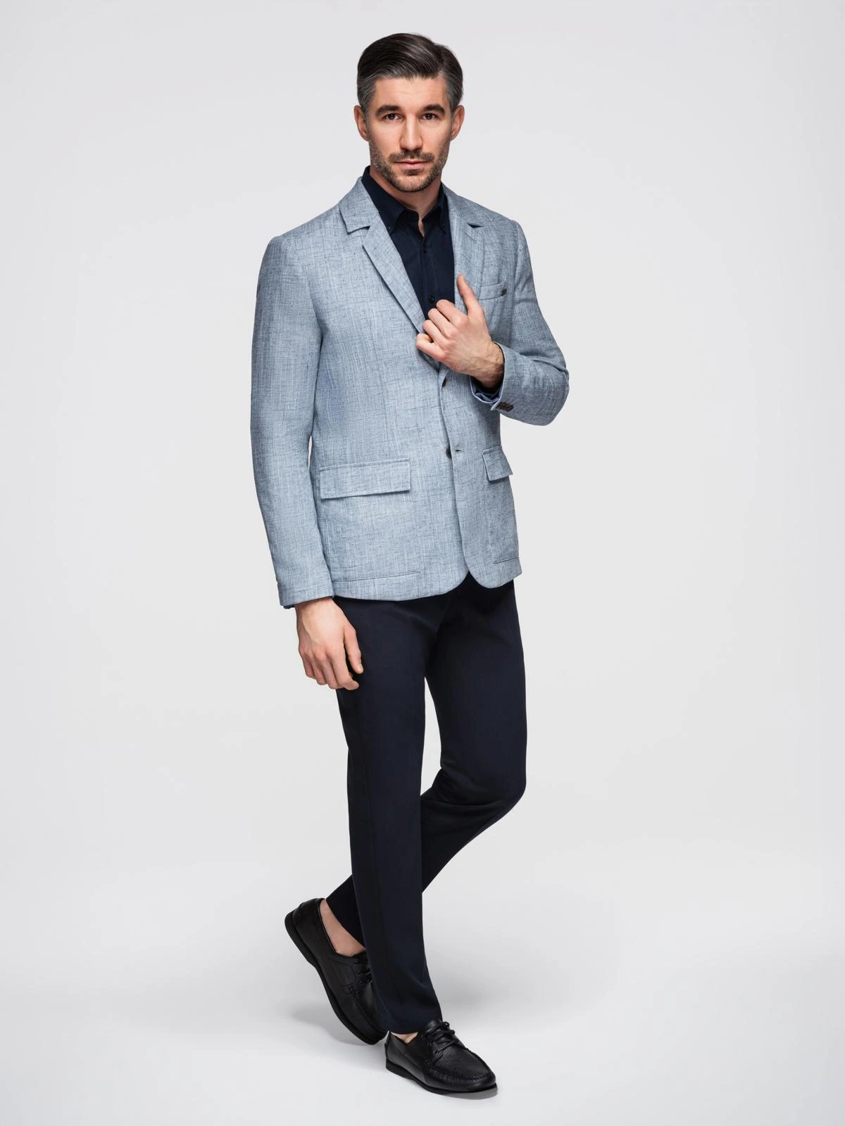 Pánské sako REGULAR střihu s plátnem - světle modré V3 OM-BLZB-0128