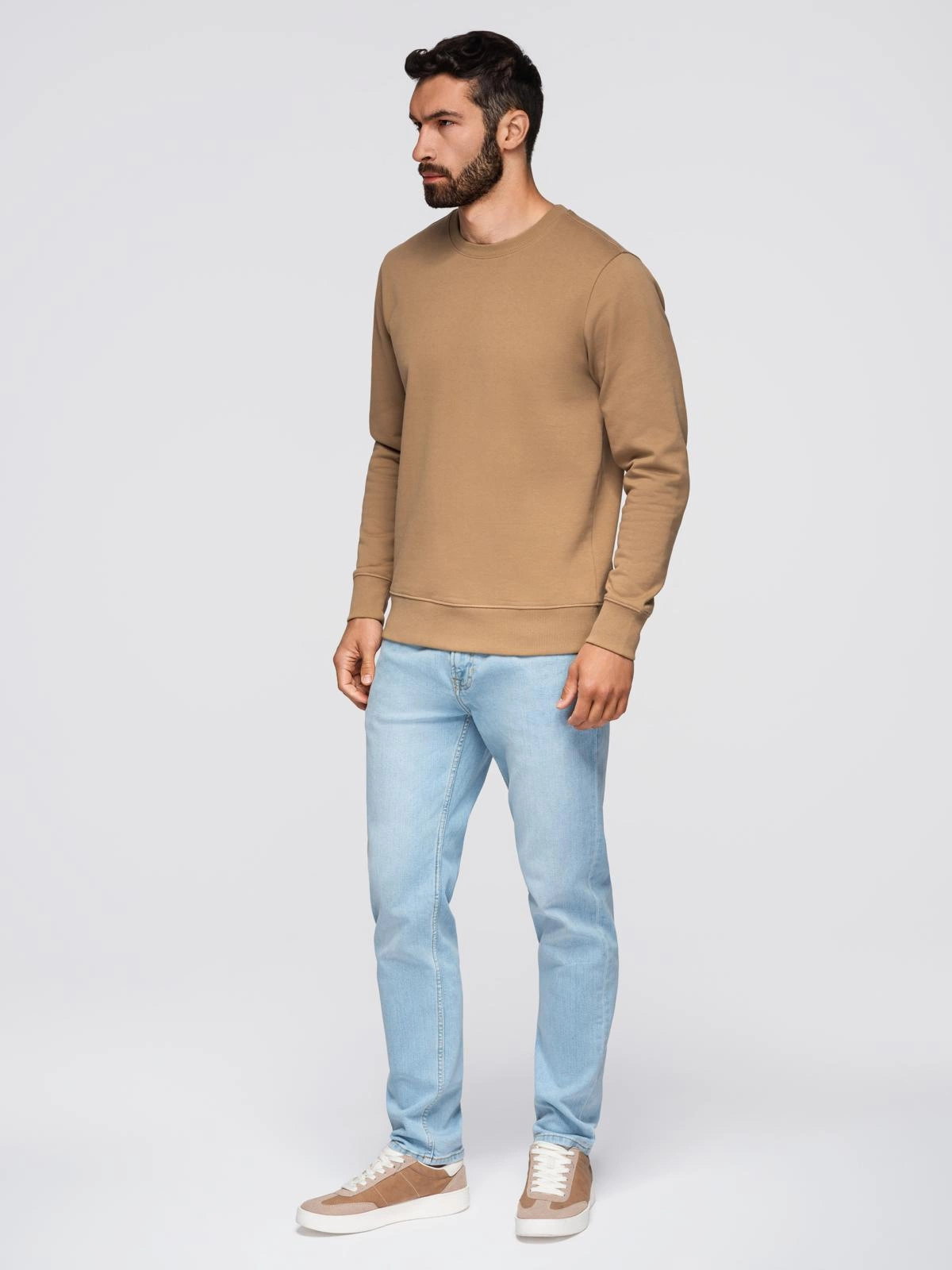 Pánská mikina BASIC s kulatým výstřihem - hnědá V2 OM-SSBN-0175