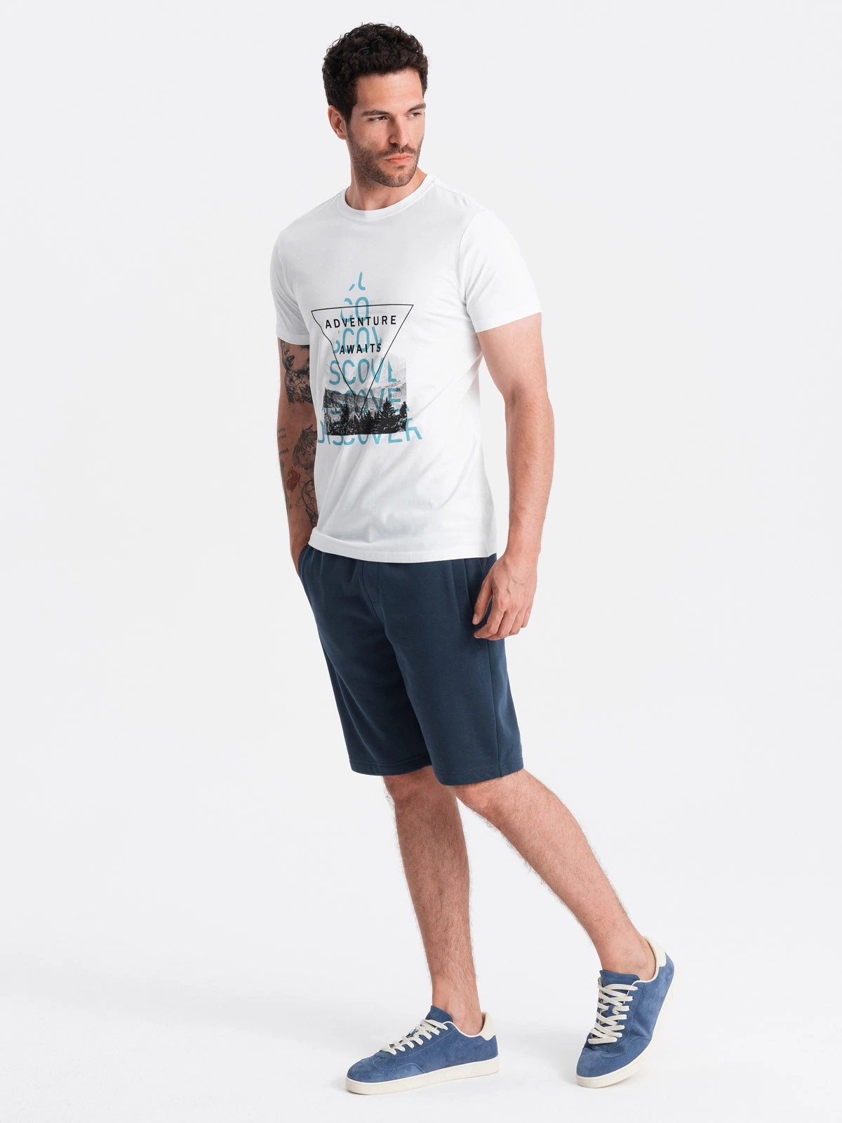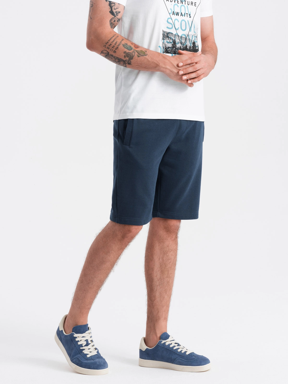 Pánské teplákové šortky BASIC s délkou před kolena - tmavě modré V1 OM-SRBS-0149
