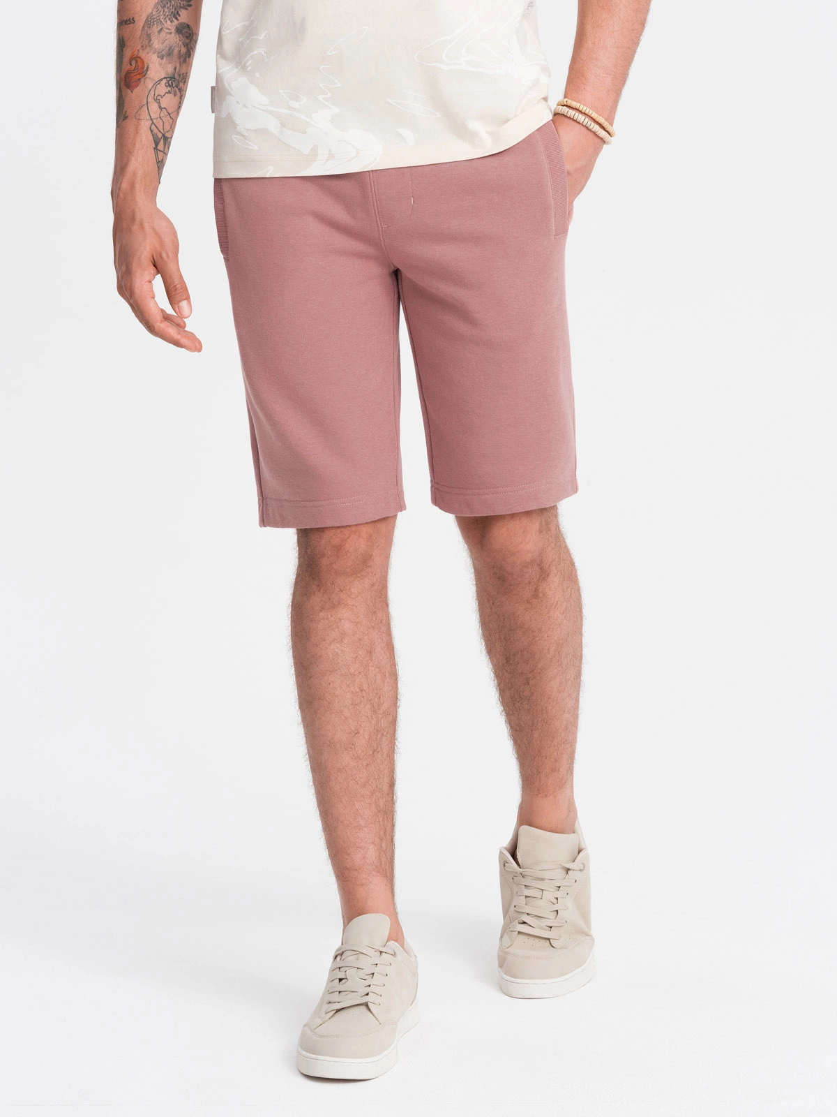 Pánské teplákové kraťasy BASIC s délkou před kolena - tmavě růžové V4 OM-SRBS-0149