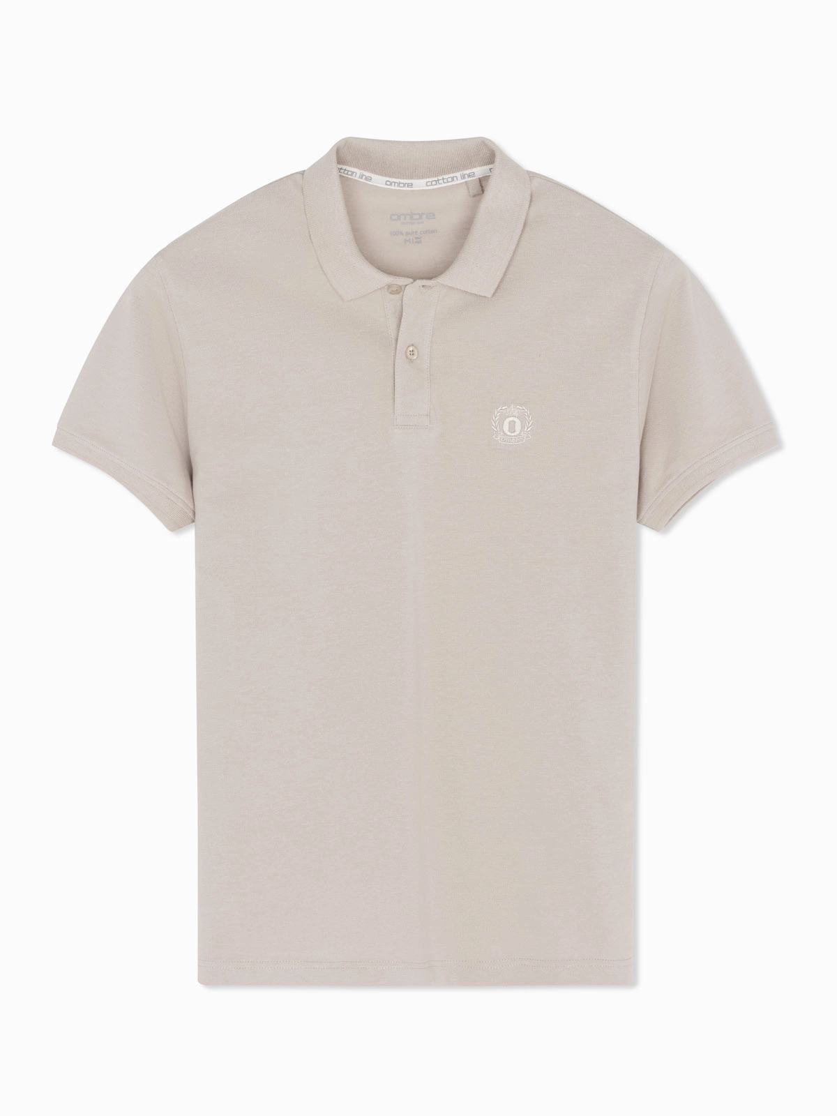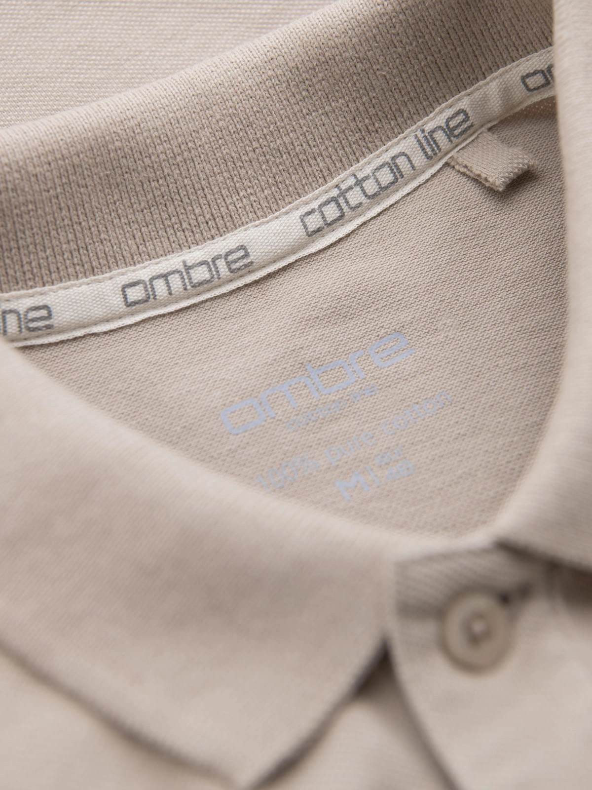 Pánská jednobarevná pletená polokošile BASIC - tmavě béžová V5 OM-POBS-0100