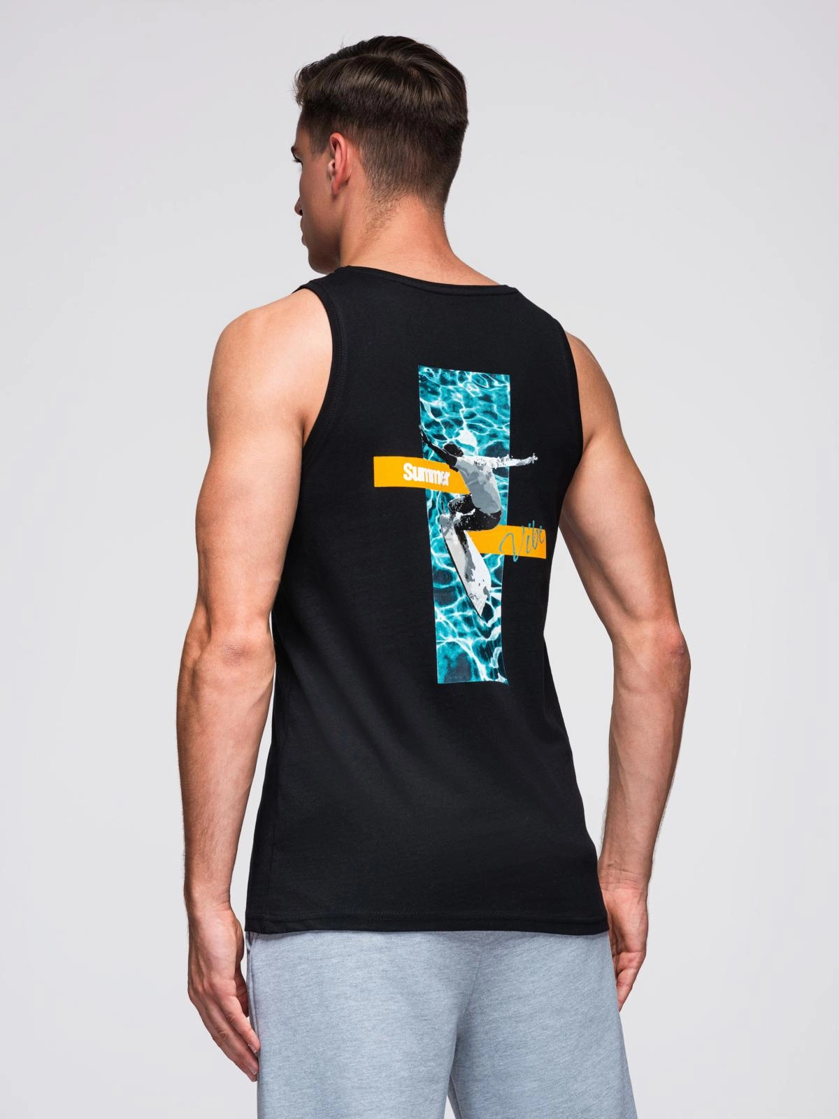 Pánské bavlněné tílko Summer Vibe s potiskem - černé V1 OM-TSTT-0191