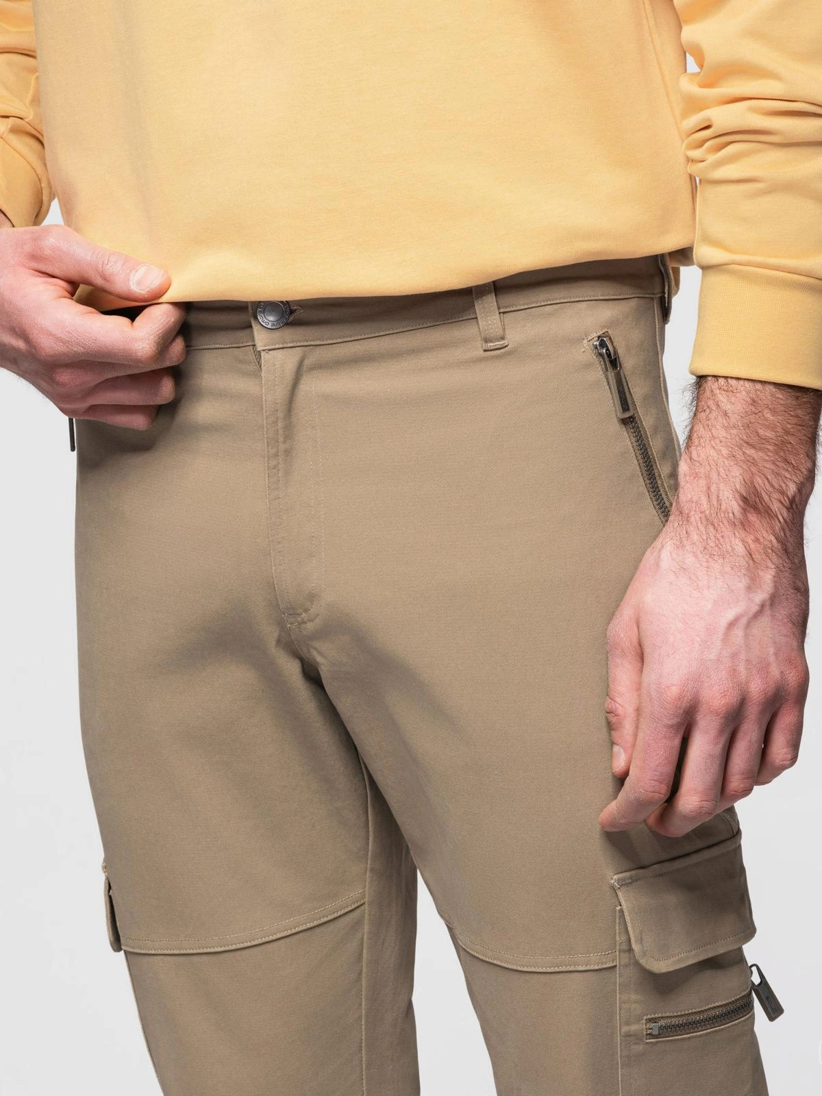 Pánské kalhoty STRAIGHT LEG s kapsami na zip - khaki V3 OM-PACG-0204