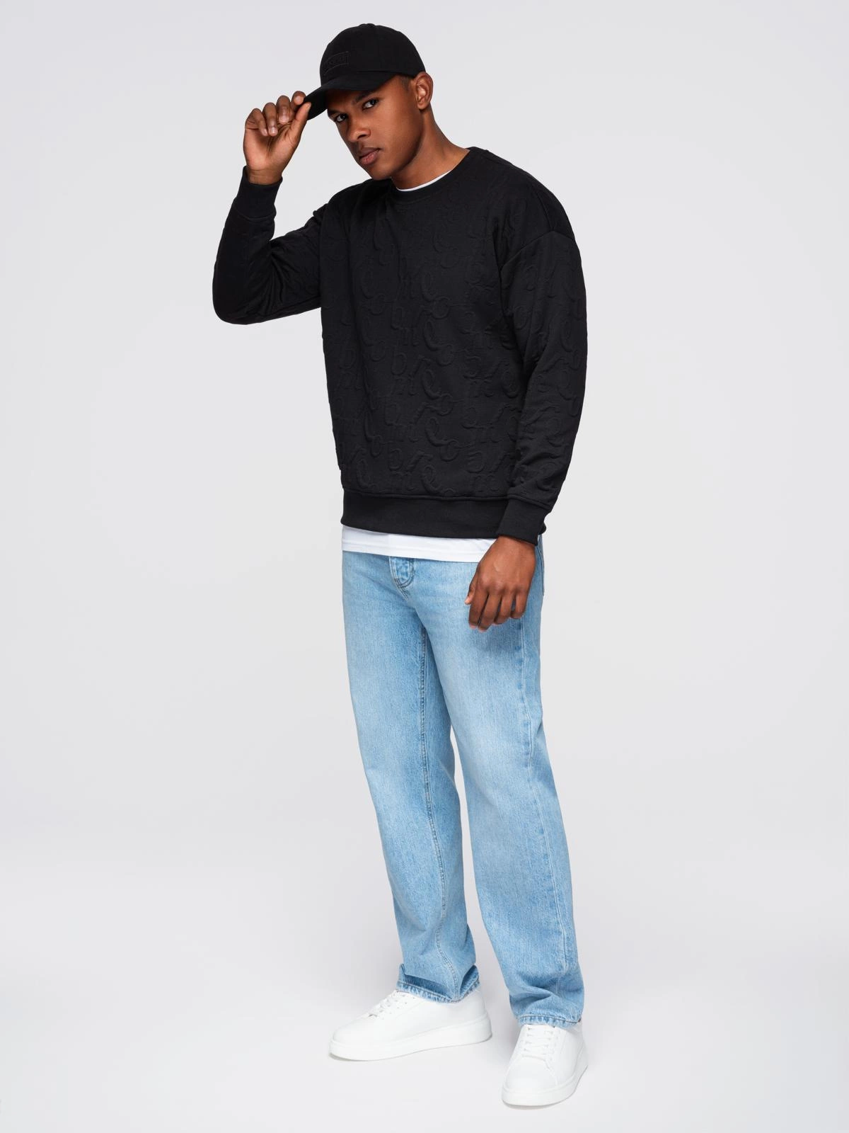 Pánská mikina RELAXED FIT s vyraženým nápisem - černá V1 OM-SSNZ-0164