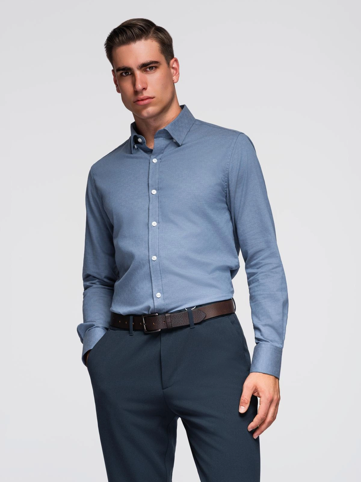 Pánská košile SLIM FIT z dekorativní tkaniny - modrá V1 OM-SHCS-0175
