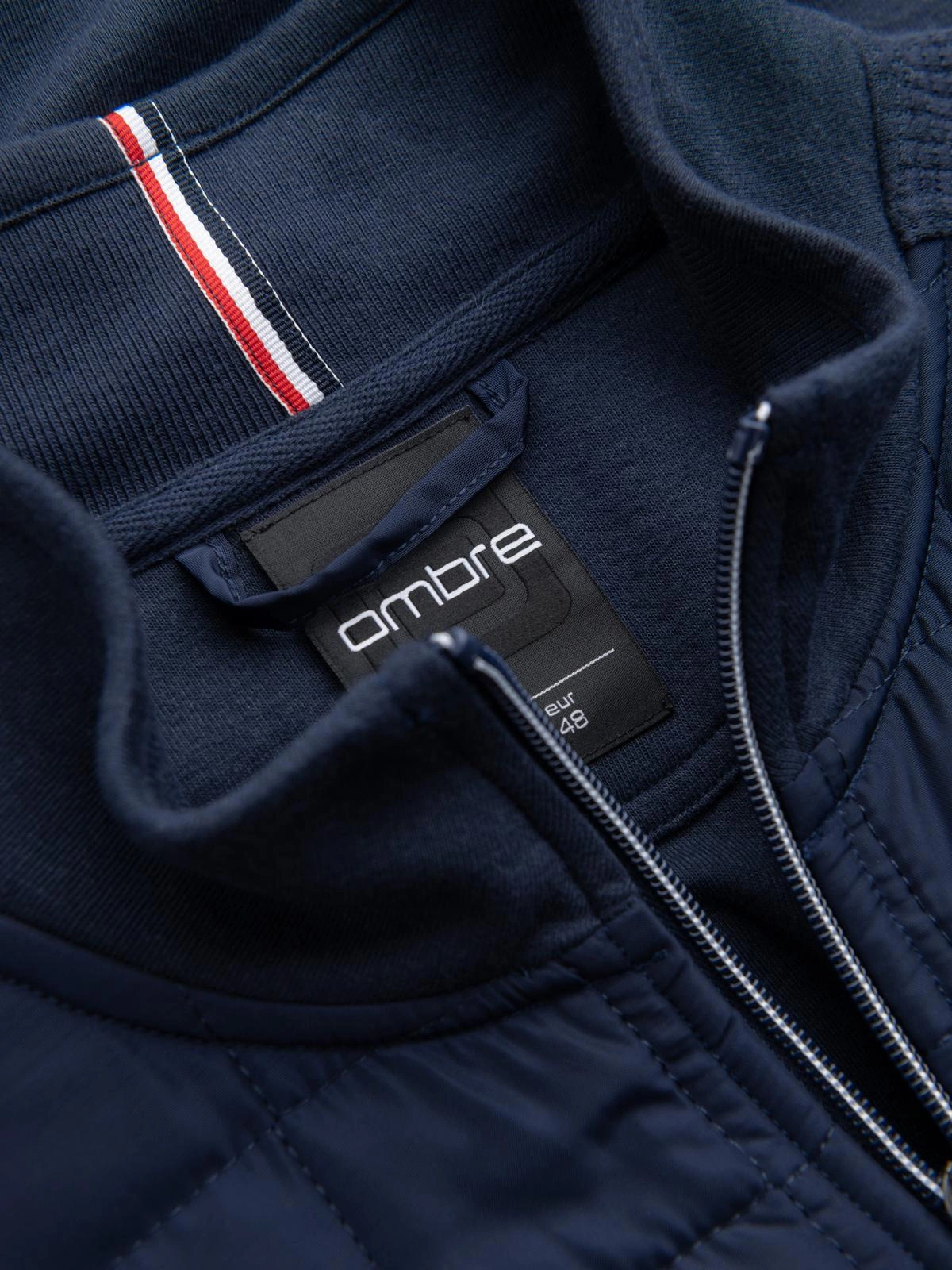 Pánská lehká bunda na zip s prošívanou přední částí - tmavě modrá V1 OM-JANP-0193