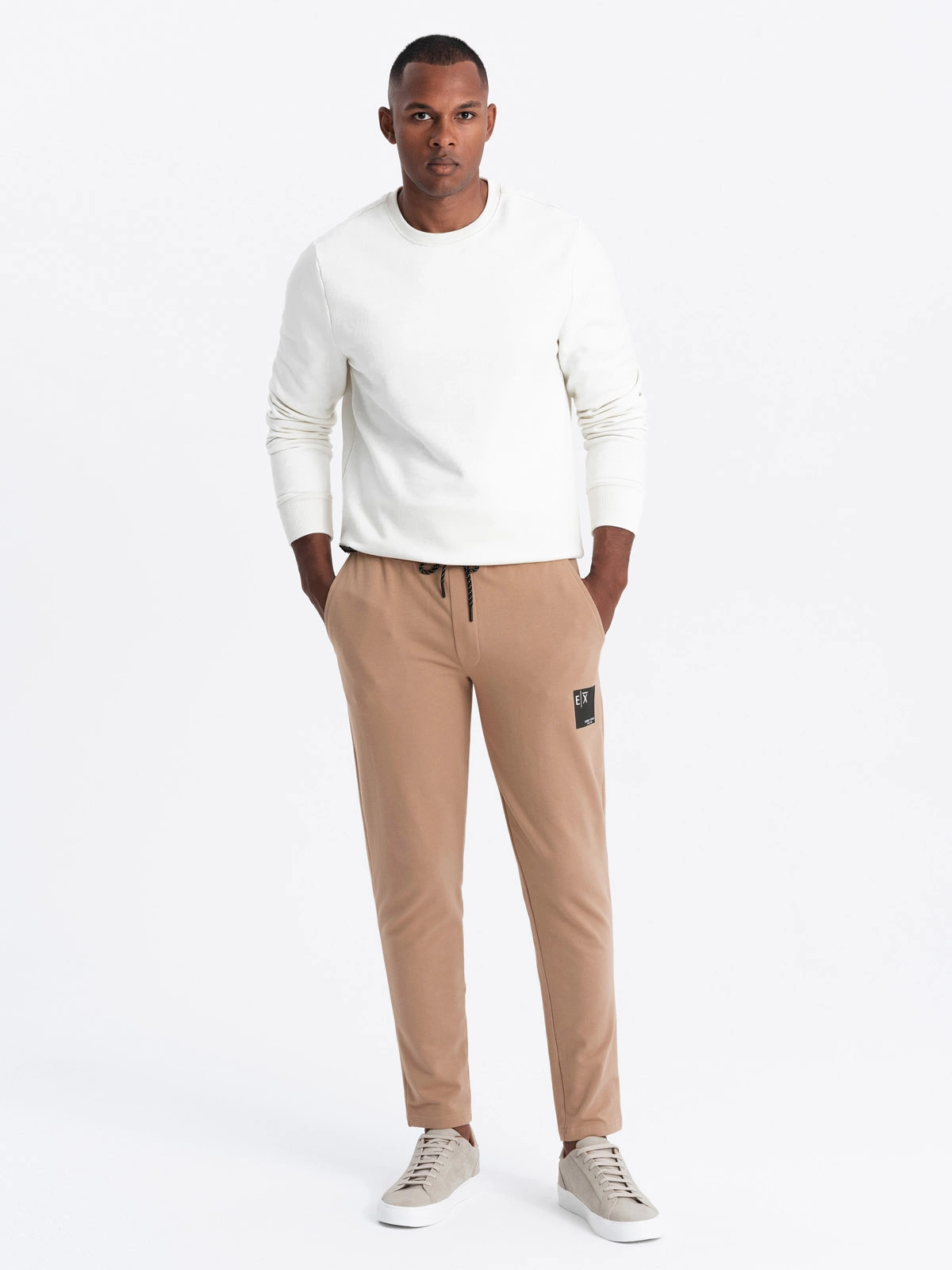 Pánské tepláky s logem - hnědé V3 OM-PASK-0167