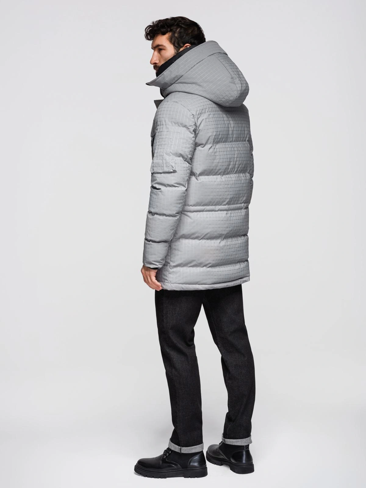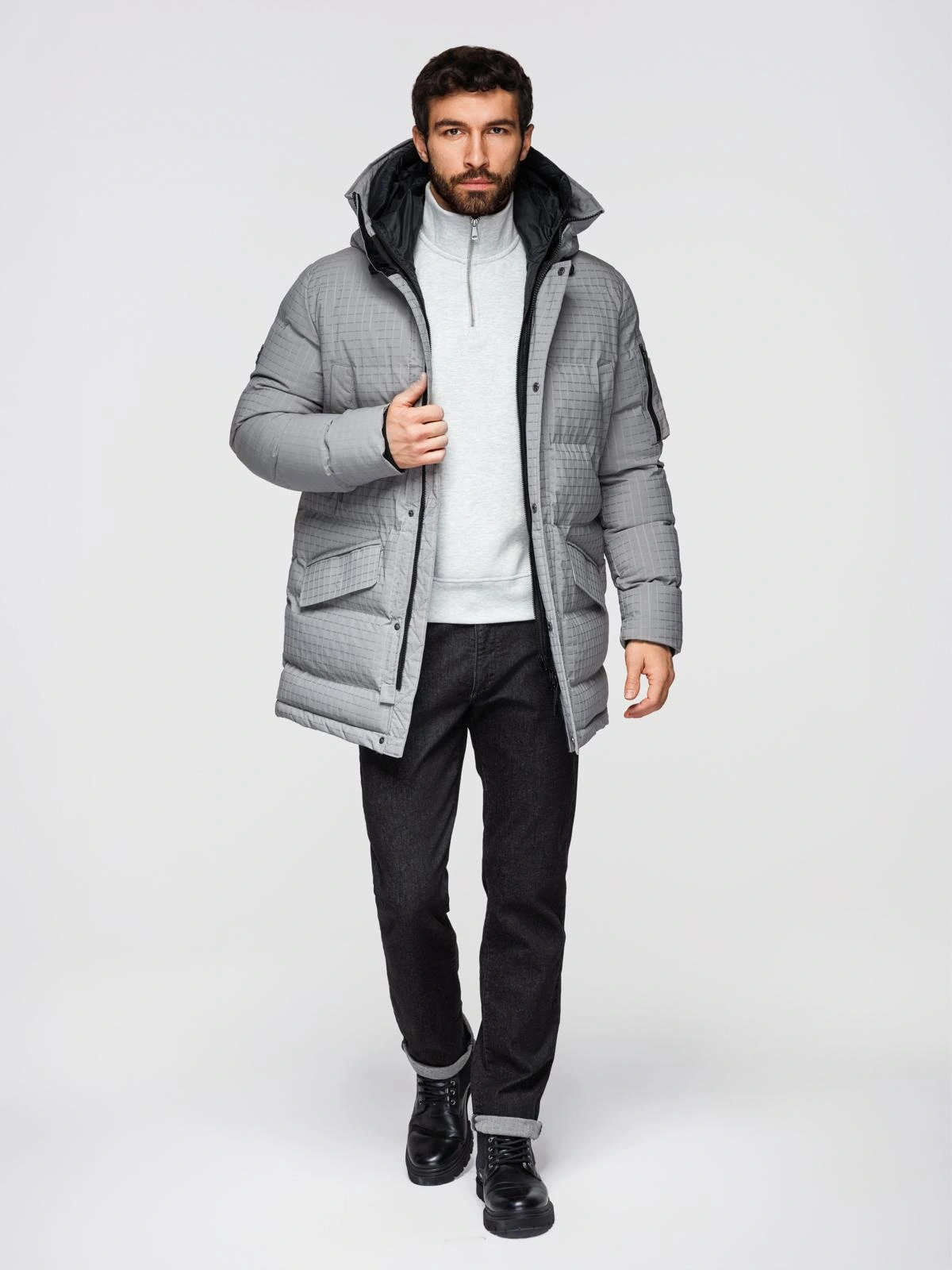 Outdoorová dlouhá pánská bunda parka - šedá V2 OM-JALJ-0201