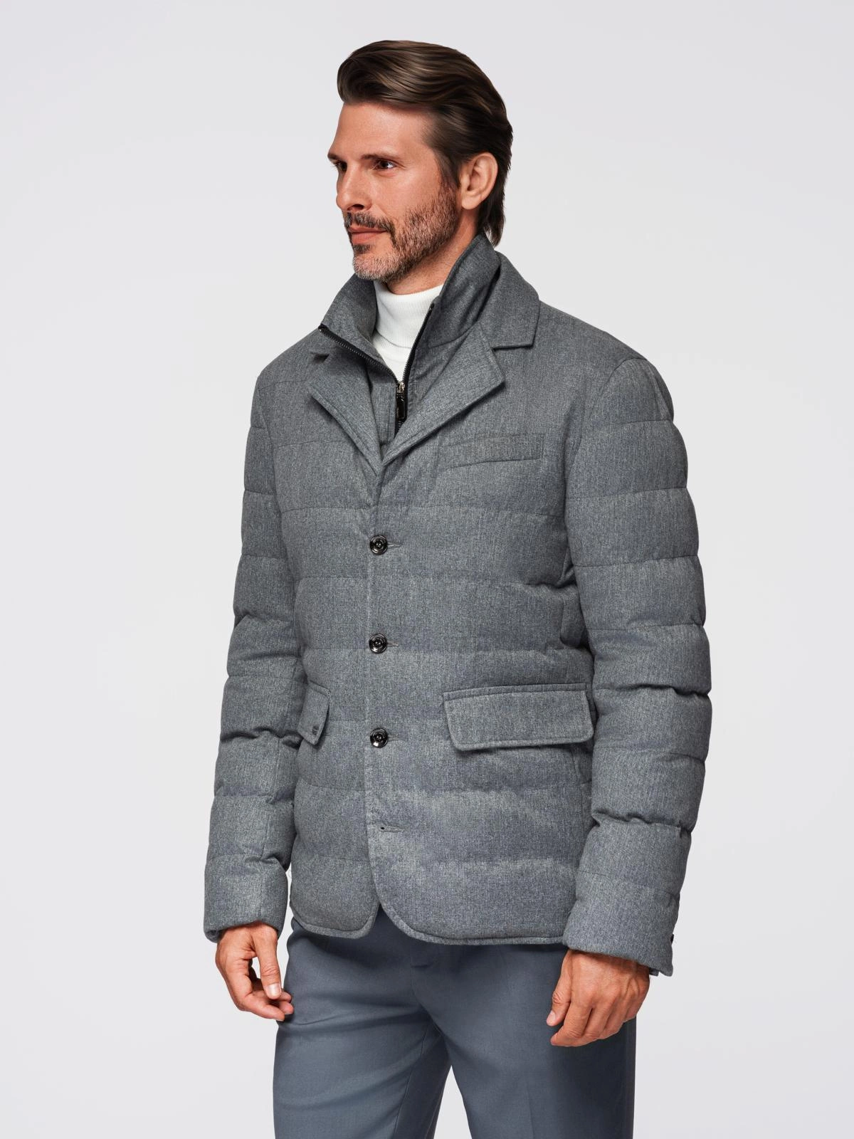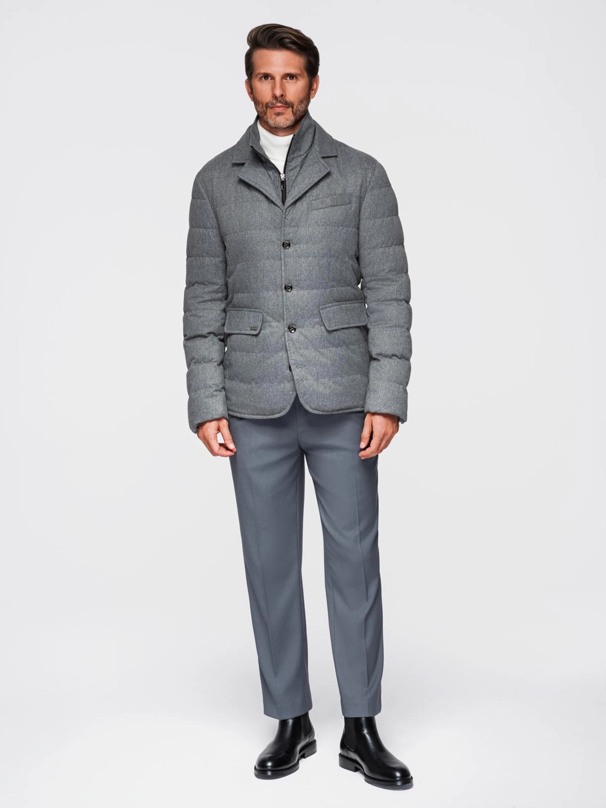 Pánská bunda s bundovým střihem a podšívkou - šedá V1 OM-JALP-0170