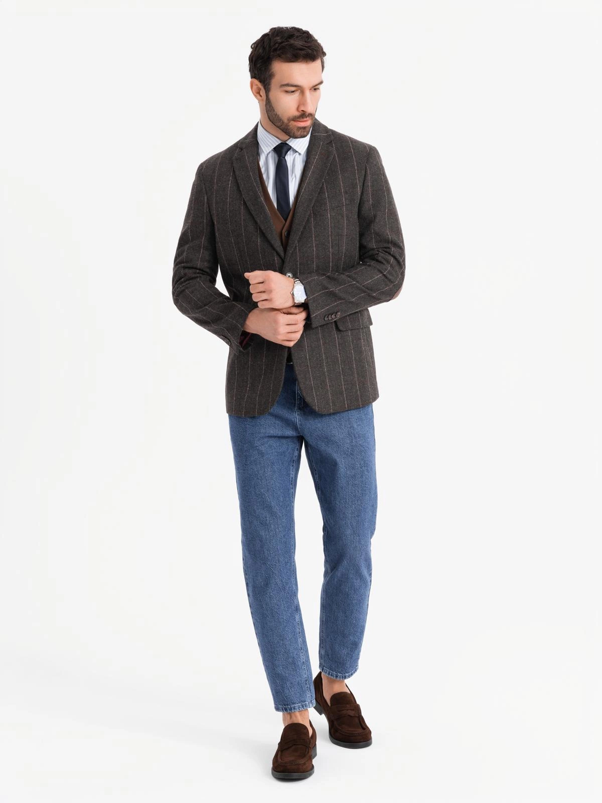 Pánské elegantní kostkované sako z vlněné směsi - grafitové V3 OM-BLZB-0137