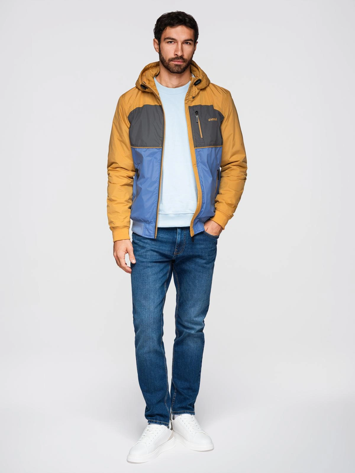 Pánská lehká barevná sportovní bunda s fleecem - modrá a hořčicová V8 OM-JANP-0194