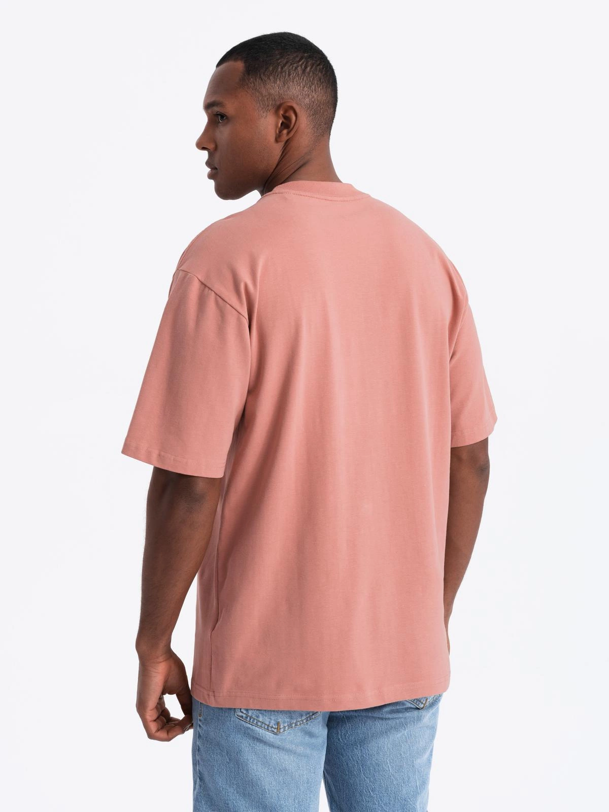 Pánské bavlněné tričko LOOSE FIT s kulatým výstřihem - růžové V5 OM-TSBC-0234