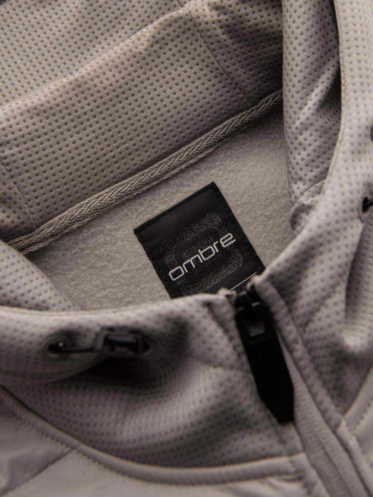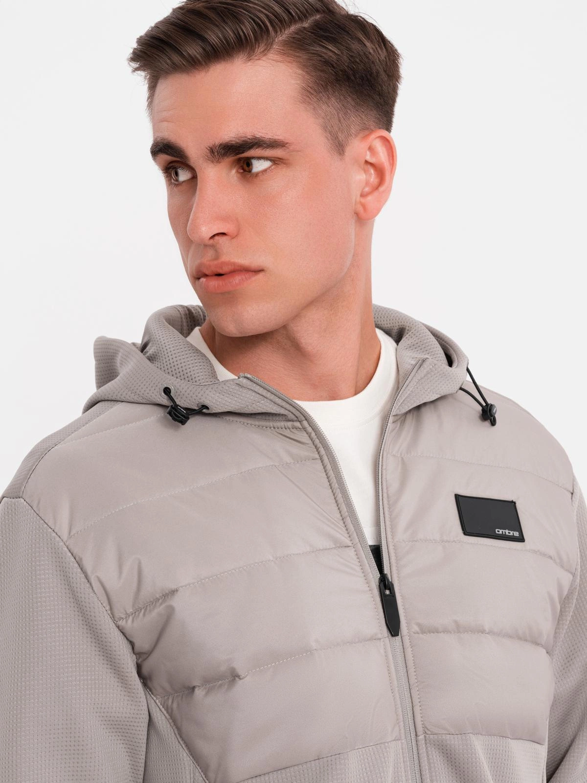 Pánská lehká kombinovaná bunda s kapucí a ozdobným prošíváním - popel V3 OM-JANP-0160