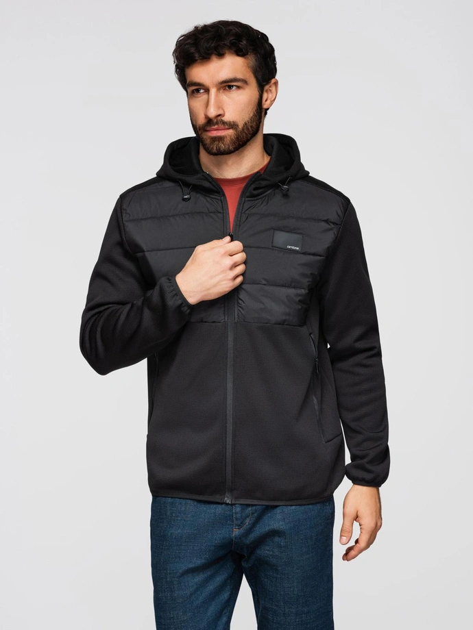 Názory na Pánská lehká bunda z kombinovaných materiálů s kapucí a ozdobným prošíváním - černá V5 OM-JANP-0160