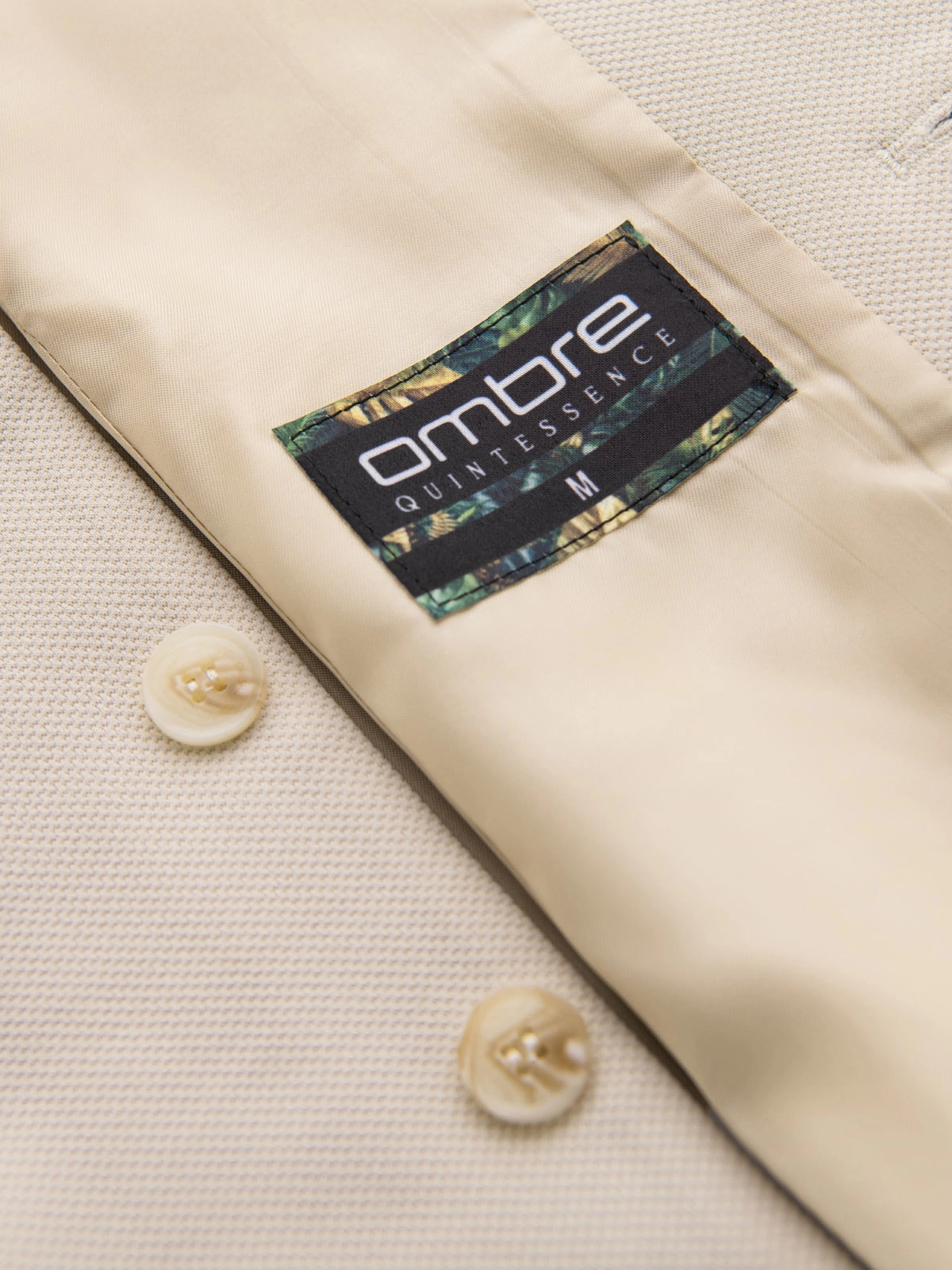 Přiléhavá elegantní pánská vesta s elastanem a klopami - béžová V2 OM-BLZV-0145