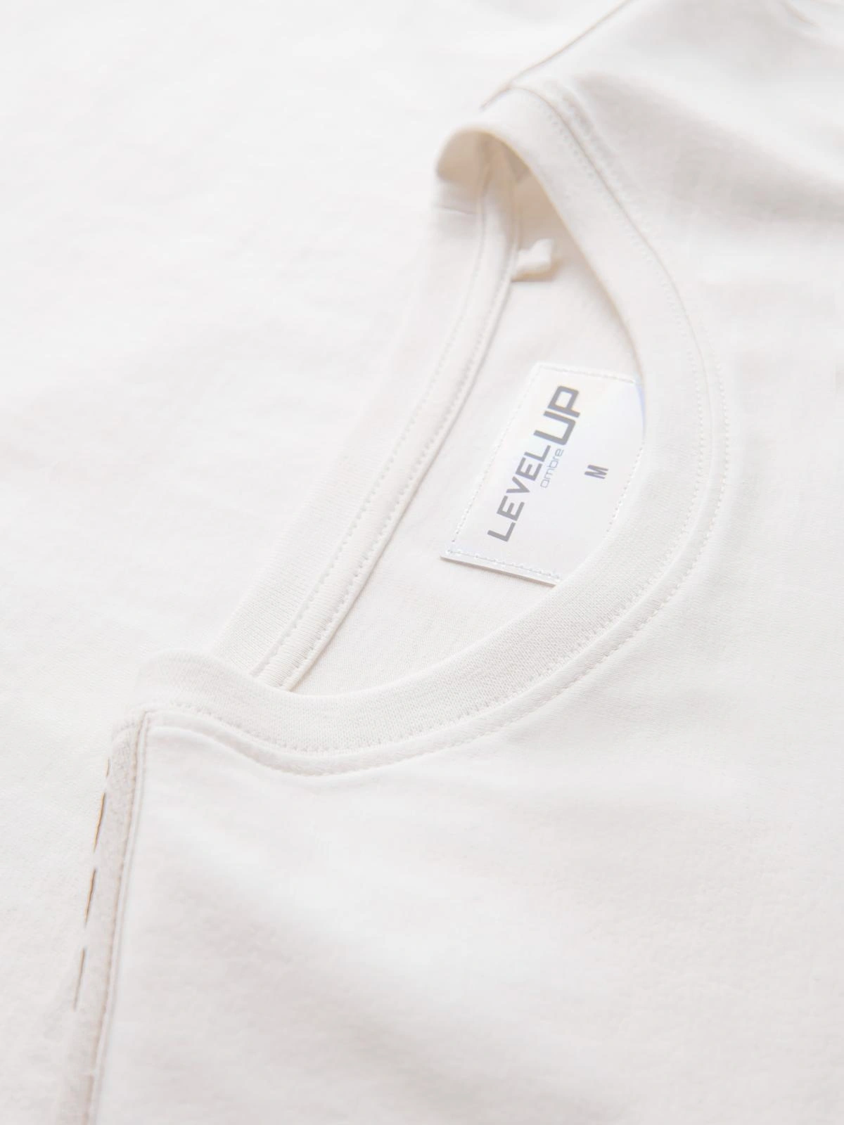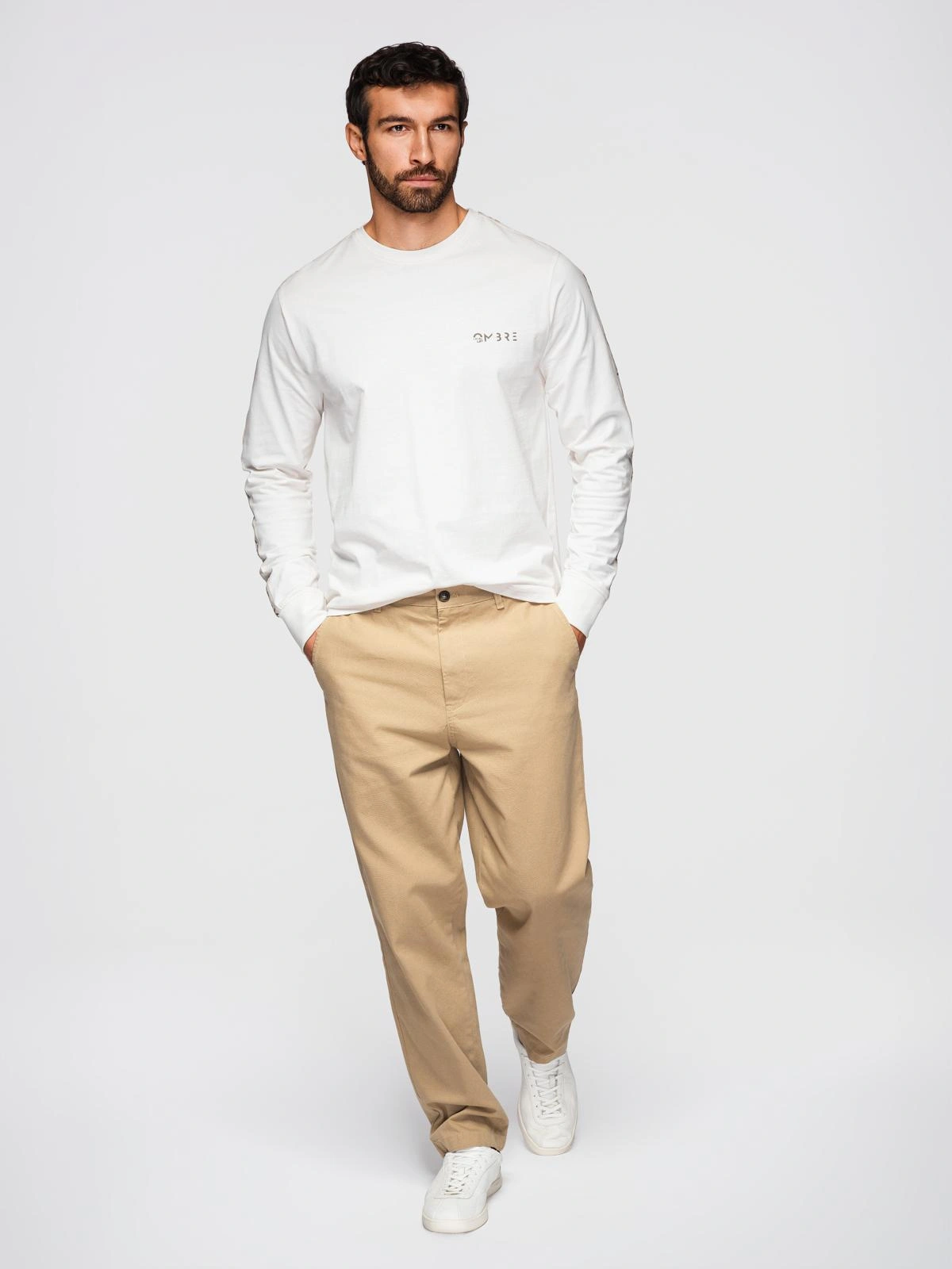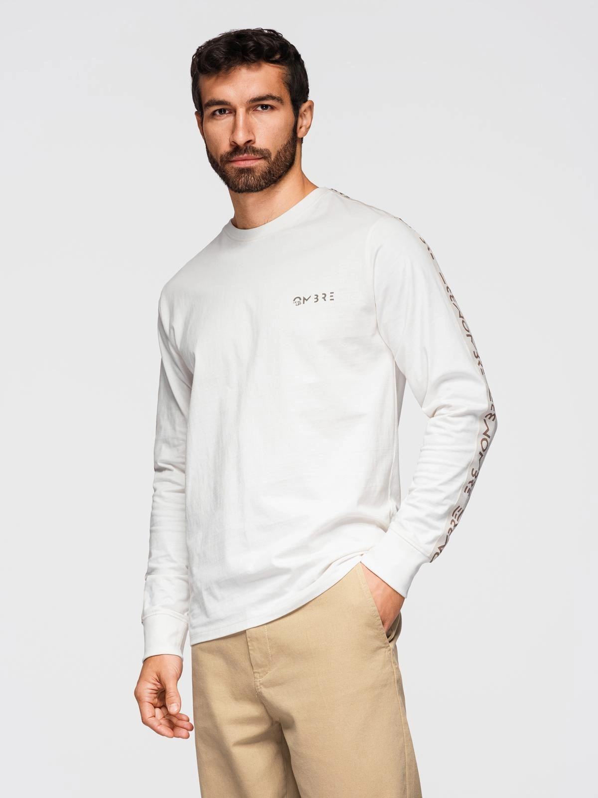 Pánské bavlněné tričko s dlouhým rukávem a lemováním a potiskem na hrudi - broken white V3 OM-LSCL-0127