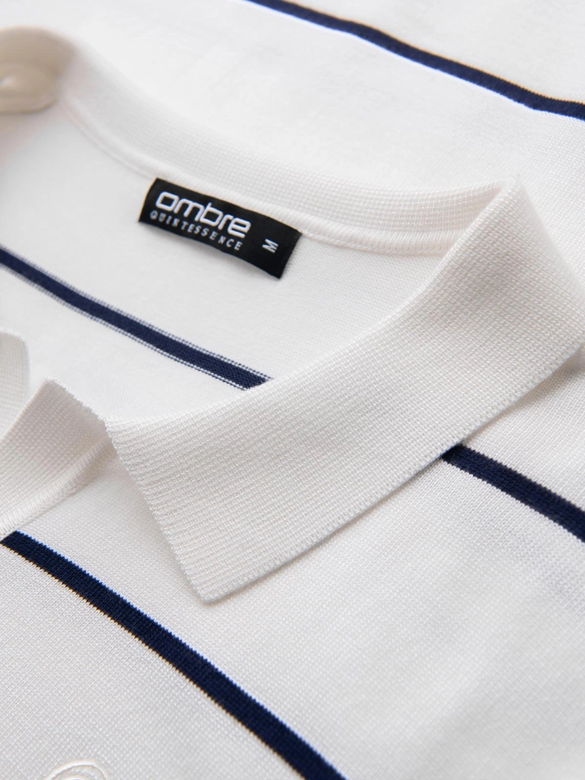 Pánská polokošile s dlouhým rukávem a vodorovným pruhem z viskózy - bílá a tmavě modrá V2 OM-POLS-0146