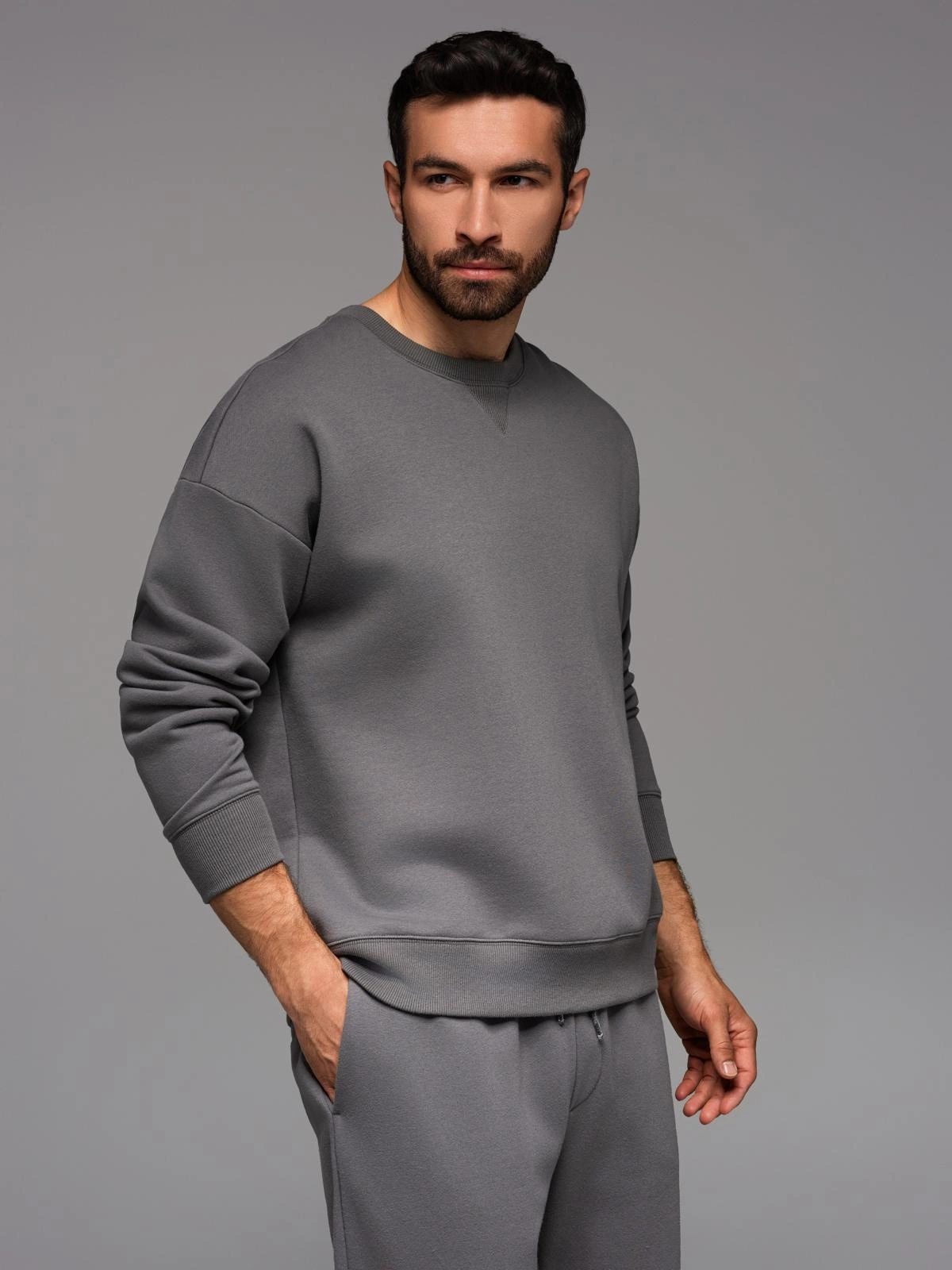 Unisex klasická mikina s kulatým výstřihem - šedá V18 OU-SNBC-0104